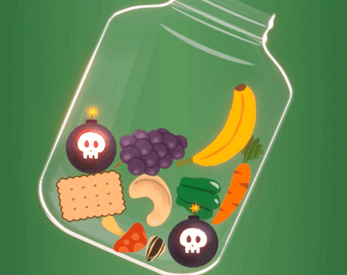Inside a spinning bottle, biscuits, food, and hidden bombs are waiting. Rotate the bottle and let the biscuits fall out — they’ll be served to children. But beware: if a bomb slips out, it explodes and your remaining time gets shorter!